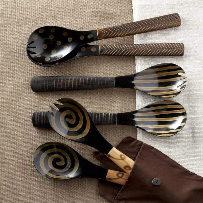 Salad Server Set Kitchen Cutlery Items Natural Horn Home/Hotels/Restaurants/Wedding Party/Party use in