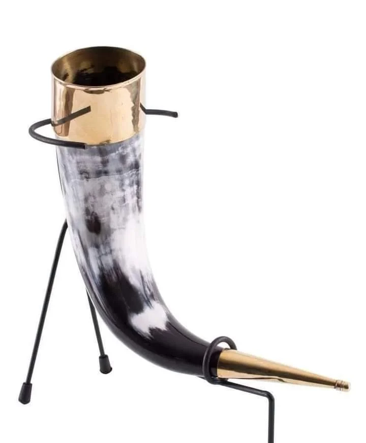 Drinking Beer Mug Natural Horn And Metal With Stand
