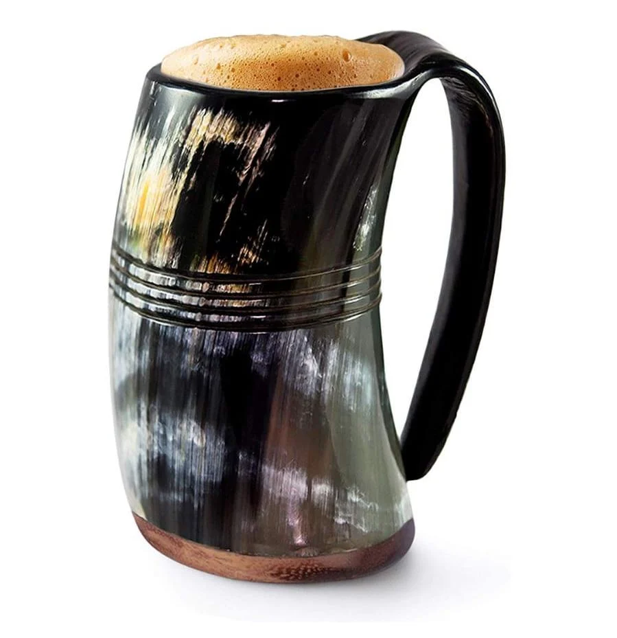 Drinking Beer Handle Mug Natural Horn Best Inlay Print