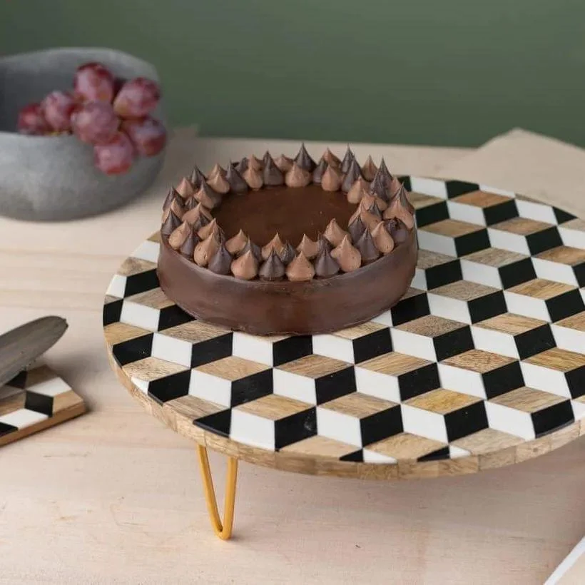 Cake Stand Wood And Resin Material Round Shape And Metal Stand Home Hotel Restaurants Use