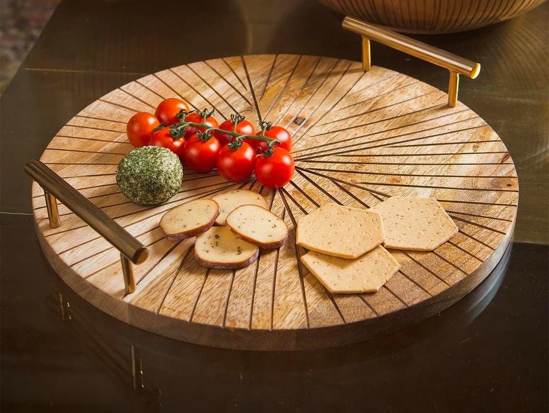 Serving Tray Wood And Metal Handle Material Use In Product Round Shape Home Hotel Restaurants Very Useful Product